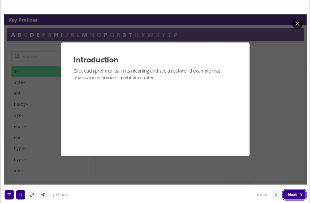 The upcoming 2025 update to the Pharmacy Tech Scholar℠ program includes an entire module on medical terminology relevant to pharmacy technicians. Resources in this module will include e-book access, activities, and an interactive e-learning segment, perfect for students studying on their own or educational institutions looking to add depth to their pharmacy technician programs.